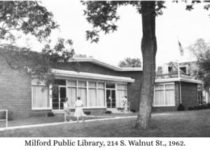 On May 31, 1926, Mrs. Brown donated her entire collection, secured additional volumes from family and friends, and presented the City with nearly 2,300 books as a parting gift. Her collection became the foundation of the Milford Public Library. With community support, a one-room library was soon established in the Milford Community Building, and in 1927, Miss M. Edith Simpson was appointed librarian. She would serve with distinction until her retirement in 1975.