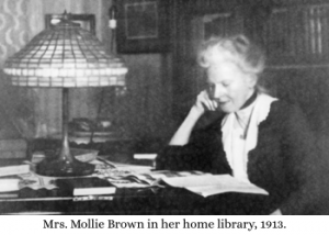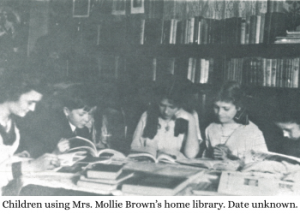 Over the next thirty years, however, rising costs and declining support put a strain on the Association. In October 1911, it was dissolved. Unwilling to lose their community library, Milford residents responded by opening their private collections to the public. Among the most notable was Mrs. Mollie Brown, who welcomed the town’s children into her home library on Northwest Front Street from 1912 until her relocation in 1921.